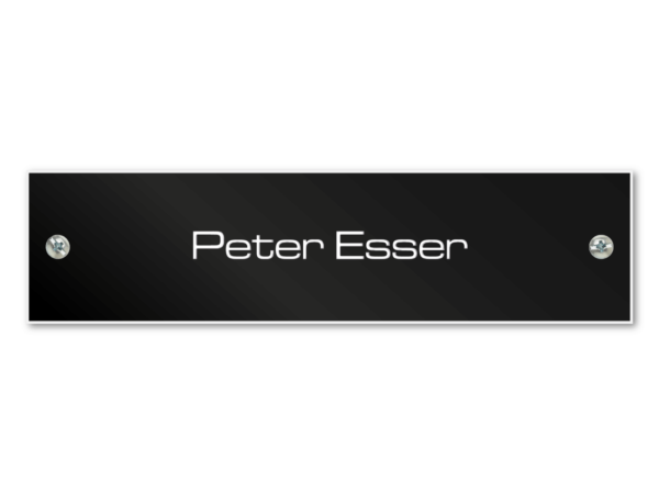 Het bevestigen met de zelfklevende achterzijde is eenvoudig. U kunt dit naamplaatje ook bestellen met 2 boorgaatjes en schroefjes.