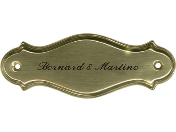 Deze sierlijke messing naamplaat is met zijn klassieke vormen en glanzende afwerking een absolute aanwinst voor je voordeur. De bewerkte toplaag zorgt niet alleen voor de mooie glans maar vertraagd ook het doffer worden van het messing.