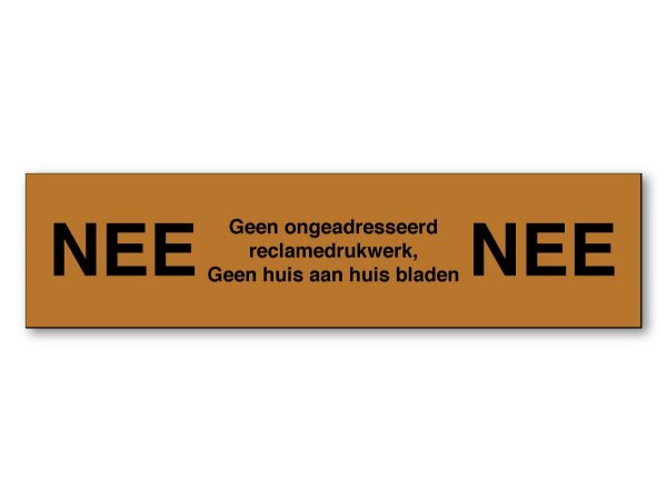 Dit goudkleurige kunststof NEE JA ongewenste reclame bord is het alternatief voor de eenvoudige sticker. Het heeft een messing uitstraling (messing look). Deze variant zorgt ervoor dat u geen ongewenst reklamedrukwerk en geen huis aan huis bladen ontvangt.