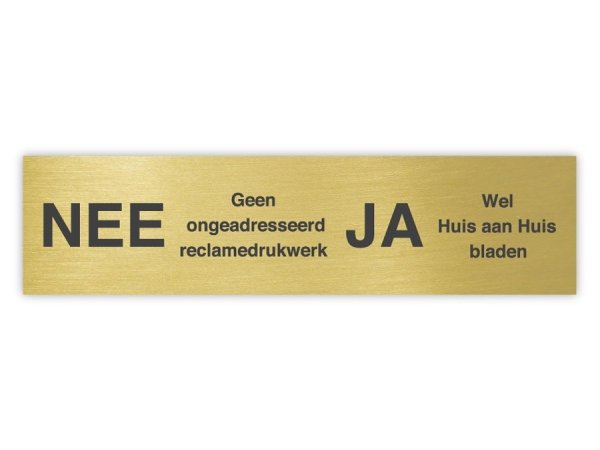 Ongewenste reclame brievenbus bordje van echt Messing. Dit bordje is het luxe alternatief voor de ongewenste reclame sticker. Met dit bordje zorgt u ervoor dat u geen ongewenst reclamedrukwerk maar wel huis aan huis bladen zal blijven ontvangen.