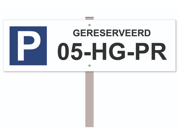 Parkeerbord kenteken (met paal) 50 x 15 cm