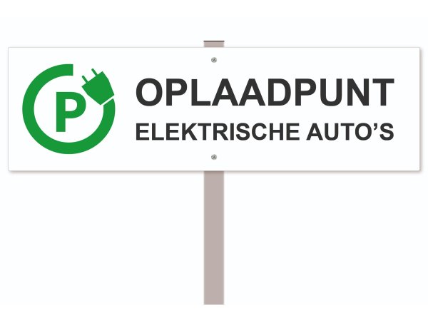 Parkeerbord Oplaadpunt elektrische auto (met paal) 50 x 15 cm