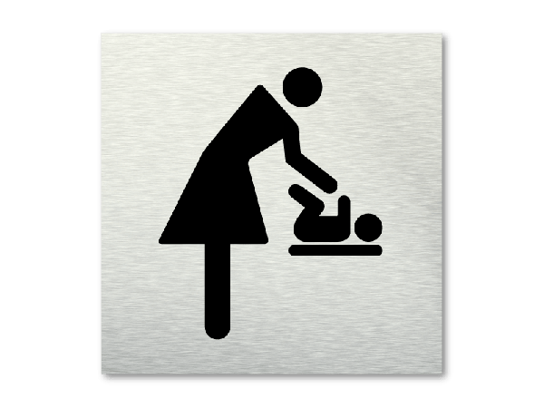 Dit vierkante rvs look pictogram is voorzien de afbeelding Baby verschoonruimte. Met dit pictogram maak je duidelijk in welke ruimte of wc de baby kan worden verschoont.