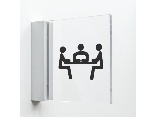 Dit pictogram geeft duidelijk aan dat deze ruimte bedoeld is als vergaderkamer. Het ontwerp past perfect in moderne interieurs zoals kantoren, openbare gebouwen en horecagelegenheden.