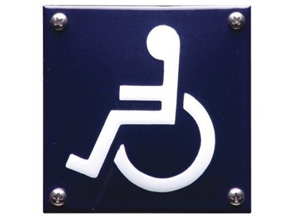 Dit schitterende pictogram van emaille is voor zien van een rolstoel en geeft invalidentoilet (miva) aan. Emaille is licht gebold en is handgemaakt. De afmeting is 10 x 10 cm en het pictogram is voorzien van schroefgaten. We leveren dit pictogram samen met een setje schroeven.