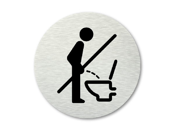 Dit handige ronde pictogram wijst gebruikers van het toilet erop om niet staand te plassen. Gebruik dit pictogram als je wilt dat gebruikers liever zittend plassen.