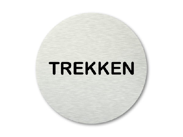Dit mooie ronde pictogram is voorzien van de tekst Trekken. Met dit pictogram zorg je ervoor dat iedereen weet dat de deur open gaat door te trekken.
