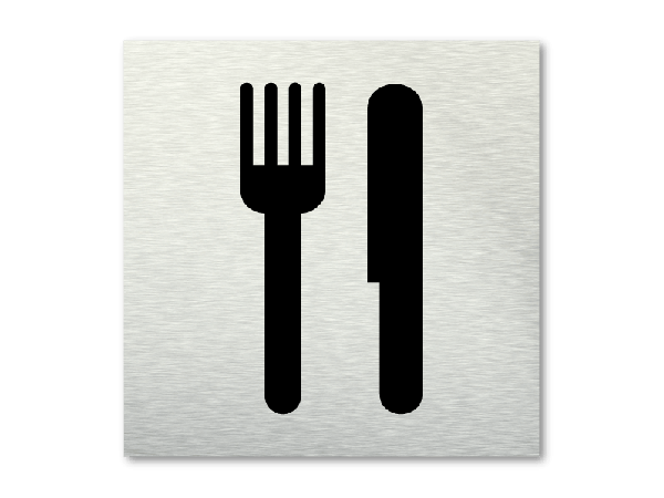 Dit vierkante rvs look pictogram is voorzien de afbeelding Restaurant. Met dit pictogram maak je duidelijk waar de eetruimte of het restaurant zich bevindt.