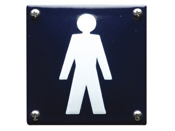 Dit schitterende pictogram van emaille is voor zien van een afbeelding van een heren toilet en geeft de wc voor heren aan. Emaille is licht gebold en is handgemaakt. De afmeting is 10 x 10 cm en het pictogram is voorzien van schroefgaten. We leveren dit pictogram samen met een setje schroeven.