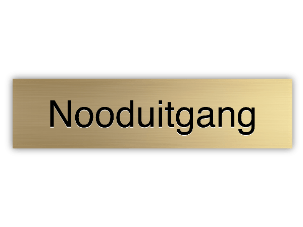 Dit messing deurbordje wordt voorzien van de tekst Nooduitgang. Dit luxe deurbordje wordt verdiept gegraveerd en vervolgens ingelakt met zwarte lak.