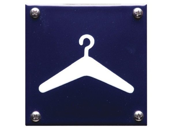 Dit schitterende pictogram van emaille is voor zien van een afbeelding van een kledinghanger en geeft de garderobe aan. Emaille is licht gebold en is handgemaakt. De afmeting is 10 x 10 cm en het pictogram is voorzien van schroefgaten. We leveren dit pictogram samen met een setje schroeven.