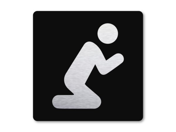 Een duidelijk pictogram om een gebedsruime aan te geven. Op het pictogram is een biddend persoon te zien. Er hiermee geeft het pictogram dan ook in één oogopslag aan dat de betreffende ruimte een gebedsruimte is.