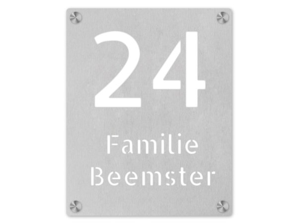 Bij dit rvs naambord wordt er geen opdruk aangebracht maar wordt de gewenste opdruk uitgespaard. Middens een laser wordt de tekst en het huisnummer uit het rvs gesneden waardoor een naambord met uitsnede ontstaat. Bij tekens die gesloten zijn zullen we verbindingsstreepjes toevoegen om te zorgen dat de tekens leesbaar blijven.