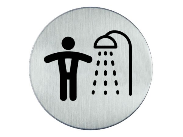 Dit rvs pictogram Douche heren is voorzien van een duidelijk symbool met een douche en een man. Het geeft aan dat de betreffende doucheruimte voor heren bedoelt is.