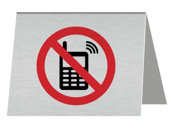 Tafelbordje / baliebordje Bellen verboden. Dit mooie Aluminium bordje heeft een afmeting van 10 x 7,5 cm. Het bordje wordt gemaakt van Aluminium met een fijne geborstelde rvs structuur. Na het bedrukken wordt het bordje in een V vorm gebogen zodat het makkelijk op een tafel of balie kan staan.