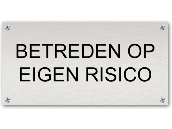 Dit Aluminium tekstbord is voorzien van de tekst "Betreden op eigen risico".