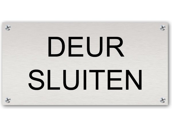 Dit Aluminium tekstbord is voorzien van de tekst "Deur sluiten".