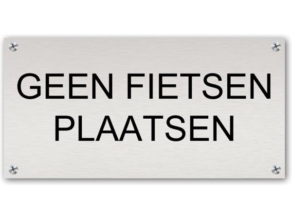 Dit Aluminium tekstbord is voorzien van de tekst "Geen fietsen plaatsen".