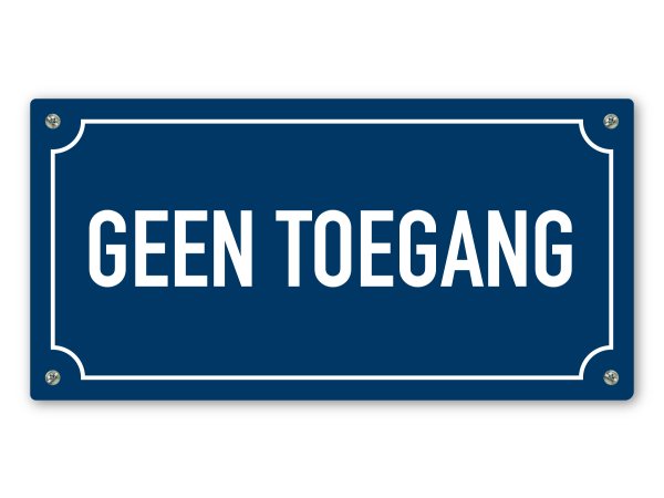 Een duidelijk tekstbord met de tekst "Geen toegang". Een handig bordje voor het geval je voor bepaalde ruimtes of terrein wil aangeven dat ze niet betreden mogen worden. De strekking van het bordje is duidelijk zonder een al te schreeuwerige opmaak. Dit bordje geen toegang is bbij uitstek geschikt om te plaatsen op een deur of hek.