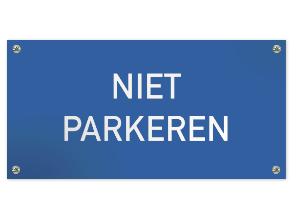Dit kunststof tekstbord is voorzien van de tekst "Niet parkeren". Dit tekstbord is verkrijgbaar in 7 kleuren4 afmetingen en 3 bevestigingsmethoden.
