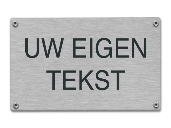 Bestel eenvoudig een tekstbord van rvs met je eigen opdruk. Je hebt keuze uit maar liefst 8 afmetingen van klein tot groot met verschillende bevestigingsopties. De afmetingen zijn: