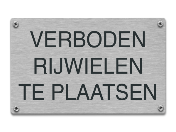 Helemaal klaar met fietsen voor je deur. Dan gaat dit tekstbord de uitkomst zijn. Dit rvs tekstbord is voorzien van de opdruk Verboden rijwielen te plaatsen en maakt duidelijk dat je de fiets ergens anders moet plaatsen.