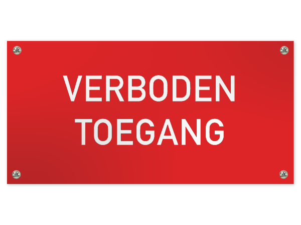 Dit kunststof tekstbord is voorzien van de tekst "Verboden toegang". Dit tekstbord is verkrijgbaar in 7 kleuren, 4 afmetingen en 3 bevestigingsmethoden.