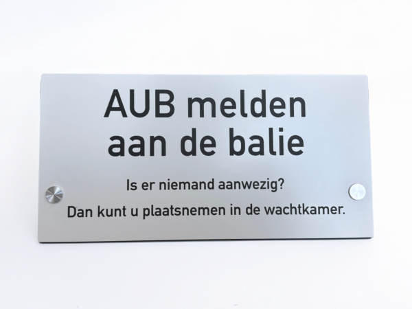 Dit handige baliebord is voorzien van mooie geborstelde aluminium staanders. Hierdoor kan het tekstbord staand worden geplaatst en is het goed zichtbaar en makelijk ergens anders te plaatsen of weg te halen. Kortom een perfect baliebord of tafelbordje.