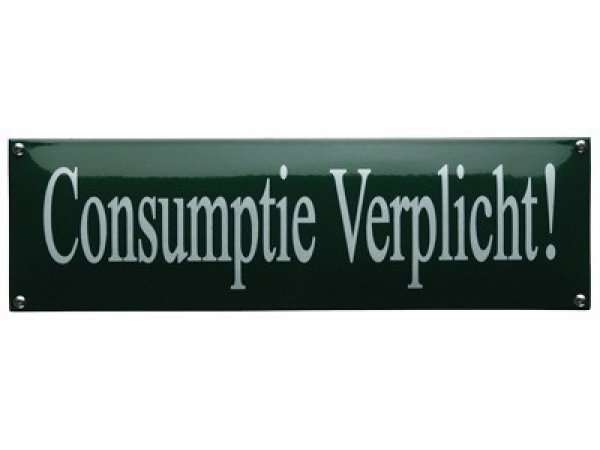 Een emaille gebold bordje met de tekst “Consumptie verplicht” is een stijlvolle en duidelijke manier om gasten op de regels te attenderen. Dit klassieke bord is verkrijgbaar in twee formaten: 15 x 5 cm voor subtiele toepassingen en 40 x 12 cm voor extra zichtbaarheid, bijvoorbeeld in horeca of openbare gelegenheden.