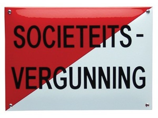 Emaille bordje met de tekst Societeitsvergunning. Emaille heeft een schitterende nostalgische uitstraling. Dit bordje wordt geleverd inclusief bevestigingsmateriaal.