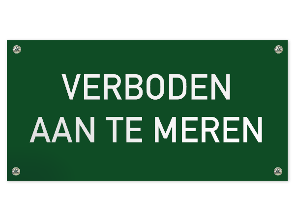 Dit kunststof tekstbord is voorzien van de tekst "Verboden aan te meren". Dit tekstbord is verkrijgbaar in 7 kleuren, 4 afmetingen en 3 bevestigingsmethoden.