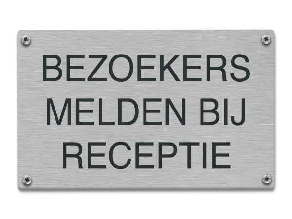 Als je een andere tekst wilt dan Bezoekers melden bij receptie dan is dit ook mogelijk. We graveren dit bordje namelijk na bestelling.