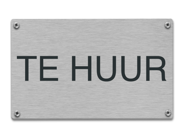 Met dit tekstbord geeft je aan dat iets te huur is. De opdruk Te Huur wordt in de toplaag van het rvs bordje gelaserd en is permanent. Kies de gewenst afmeting en bestel direct je tekstbord.