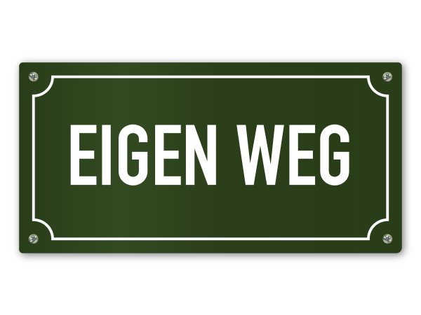 Dit groene tekstbord is voorzien van de tekst "Eigen weg". Dit bordje dient ervoor om aan te geven dat de betreffende weg een prive terrein of eigen weg is. Doorgaans wordt een eigen weg bordje toegepast wanneer de openbare weg overgaat in een eigen weg. Op een eigen weg gelden andere regels en kan je als eigenaar anderen de toegang ontzeggen. Je stelt met dit bordje de weg niet open aan publiek en hiermee vookomt je dat de eigen weg op den duur verandert in een openbare weg. Zie voor meer informatie de Wegenwet.