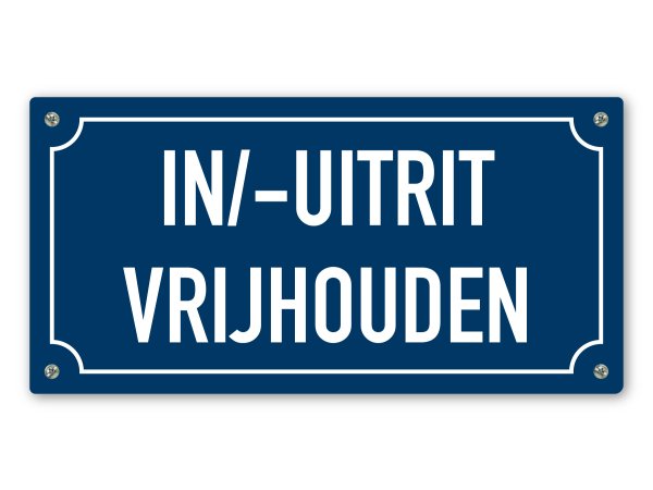 Heb je een in/uitrit en worden er geregeld auto's geplaatst waardoor je moeilijk kan in of uitrijden? Dan is dit tekstbord een manier eenvoudige om mensen erop te attenderen op de in/uitrit en een vriendelijk verzoek om het vrij te houden. Dit tekstbord in/uitrit vrijhouden is geen officieel verkeersbord en het is slechts ter kennisgeving.