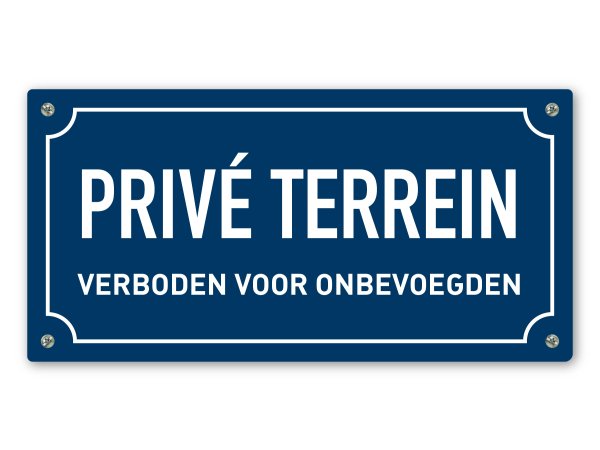 Met dit tekstbord "Prive terrein verboden voor onbevoegden" maak je direct duidelijk dat je zonder toestemming het terrein niet mag betreden. Dit tekstbord wordt vaak gebruikt in situaties waarin het onduidelijk kan zijn of het een openbaar of prive terrein betreft.
