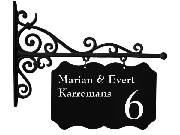 Voeg een persoonlijk tintje toe door het onderbord te personaliseren met je naam, huisnummer, openingstijden, of zelfs een logo op verzoek. Kies voor de charme van gietijzer en maak van je gevel een echte eyecatcher.