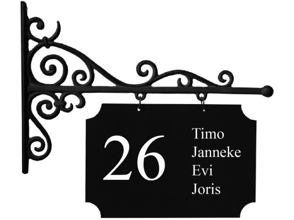 Een uithangbord van gietijzer in de kleur zwart. Dit mooie klassieke uithangbord kan binnenkort aan jouw gevel hangen. Het is geschikt voor zowel thuis als voor je winkel of bijvoorbeeld een B&B. Het uithnagbord is gemaakt van gietzijzer en heeft daardoor een nostalgische uistraling. Het geheel bestaat uit een onderbord en frame. In totaal beslaat het 41 x 26 cm.